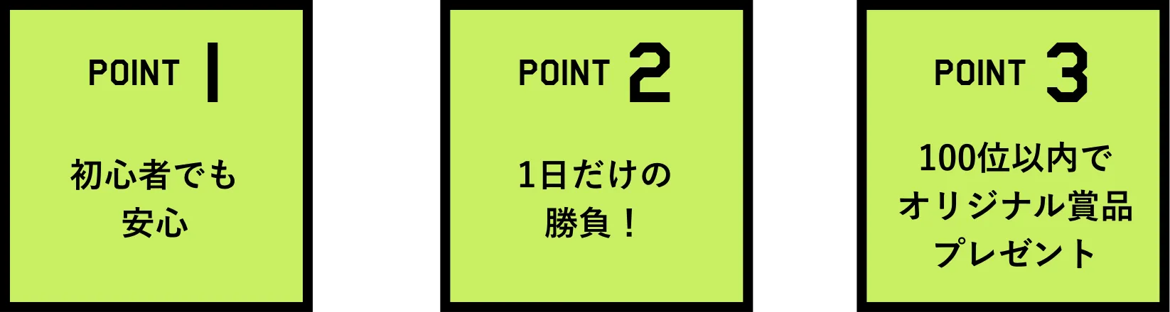 - ※同スコアの方が多数の場合、のルールに従いランキングを確定いたします。ご了承ください。